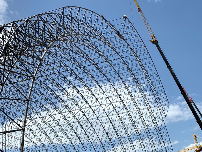 (2)网架加工前应对现场尺寸进行复测,确认无误后方可进行加工、安装;网架制作、运输、安装应遵守《空间网格结构技术规程》JGJ7-2010、《钢网架河北区螺栓球节点》JG/T 10-2009、《钢网架河北区螺栓球节点用高强度螺栓》 GB/T 16939-2016、《河北区钢结构河北区工程河北区施工规范》 GB50755-2012、《河北区钢结构河北区工程施工质量验收标准》 GB50205-2020。